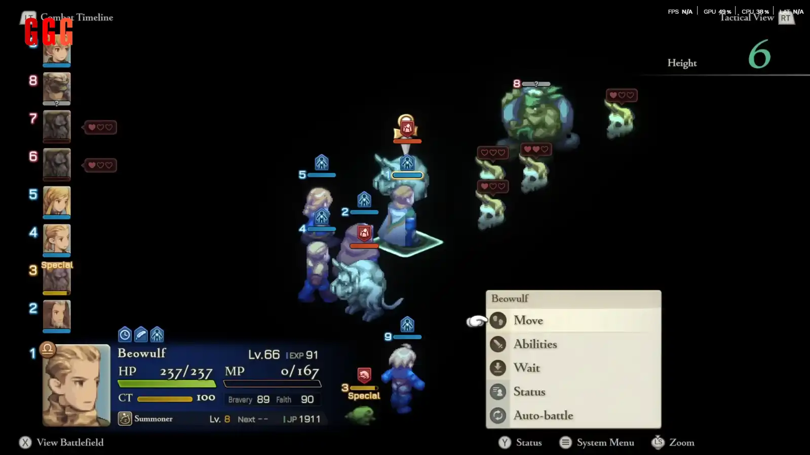 Beowulf (Chicken/Stall): Use Chicken to drastically reduce Orlandeau's Bravery, reducing his success rate for blocking your steal attempts and Agrias's attacks. Use Stall to bring his Speed down to zero.