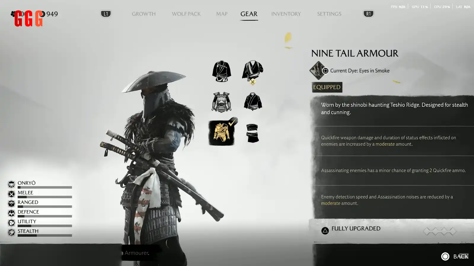 Nine Tails Armor is for players who utilize their quick-fire weapons and stealth extensively.