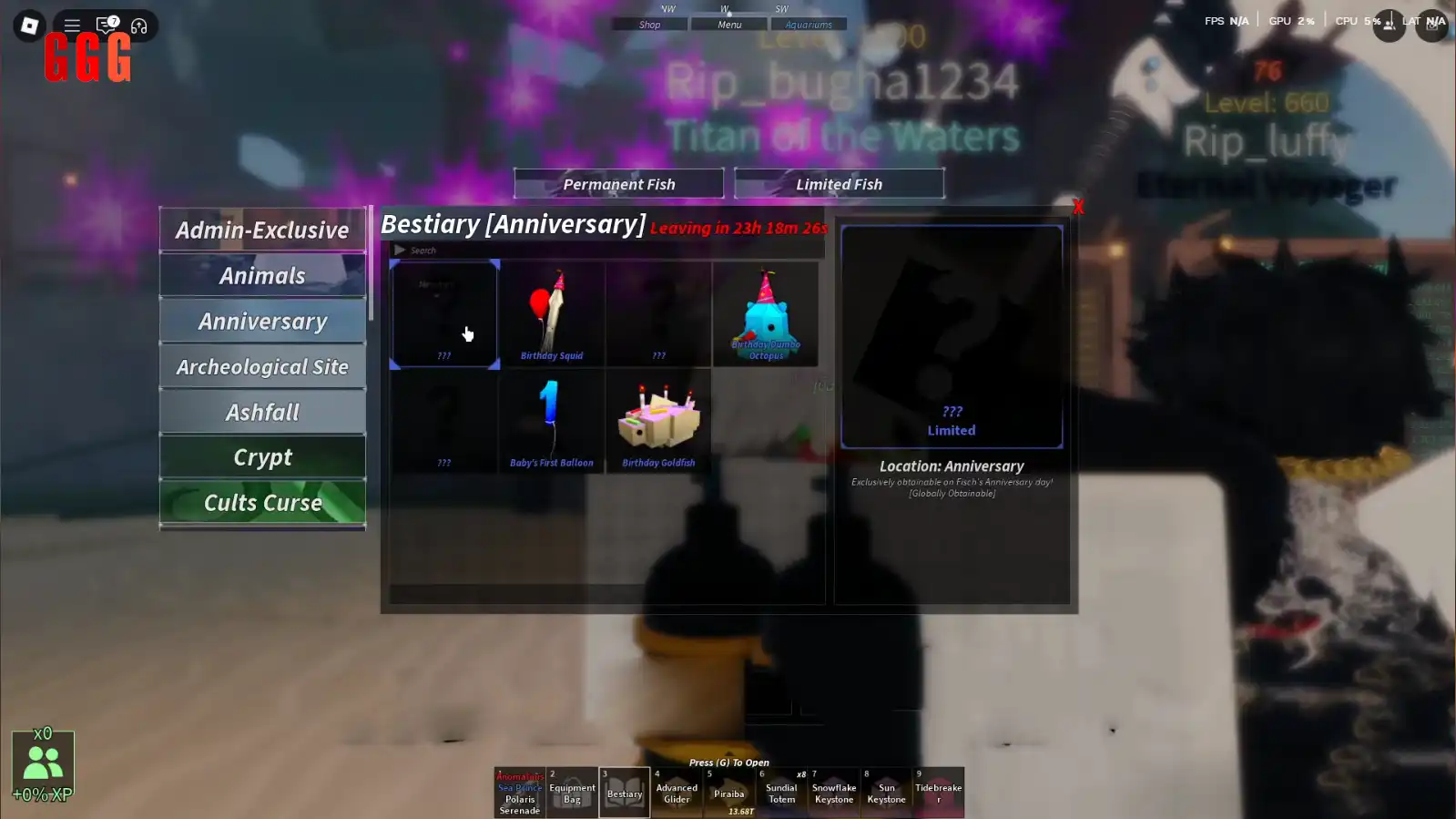 Anniversary Event comes with a total of five various fish and item entries to complete the Bestiary, along with the Birthday Megalodon.