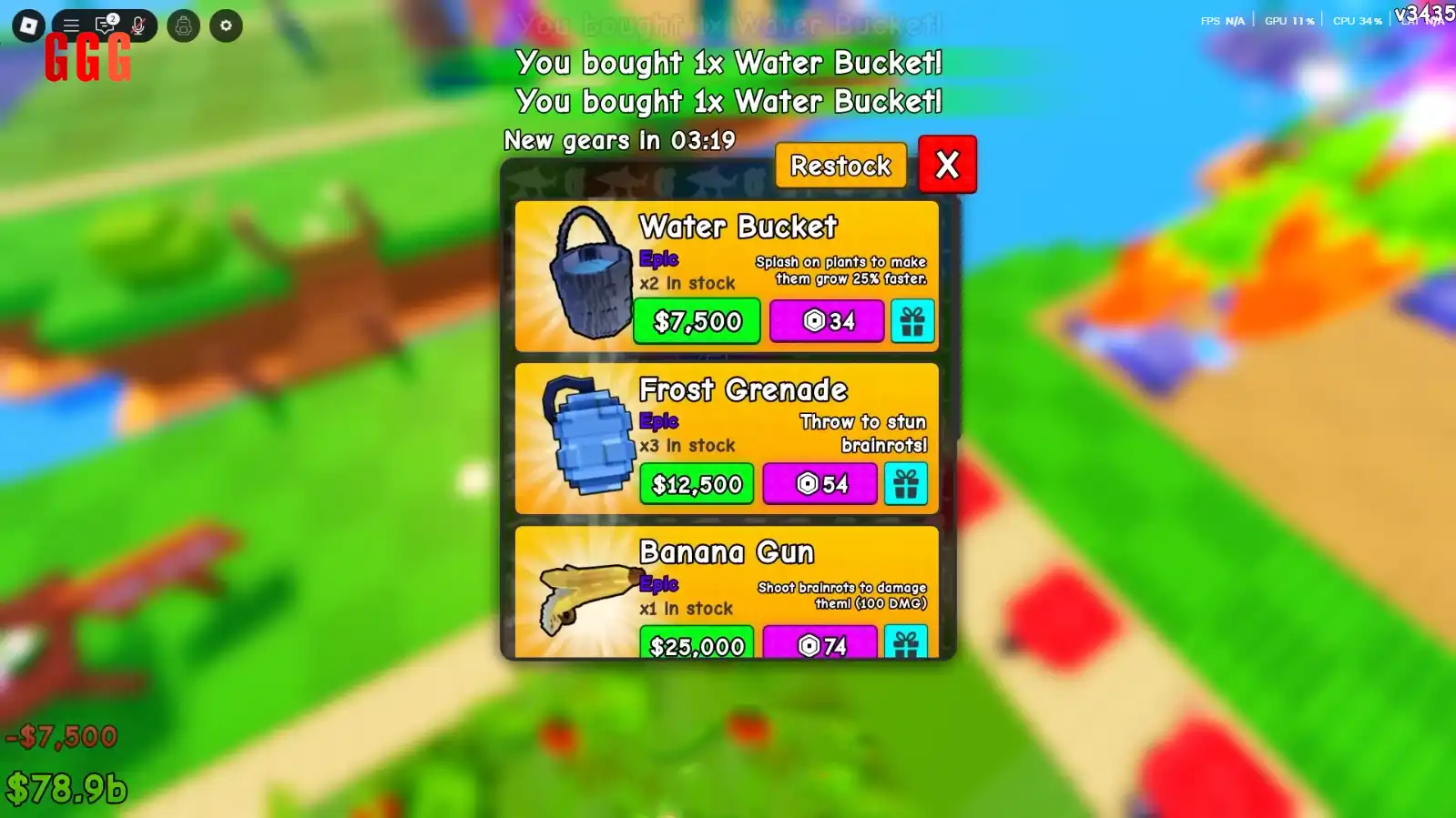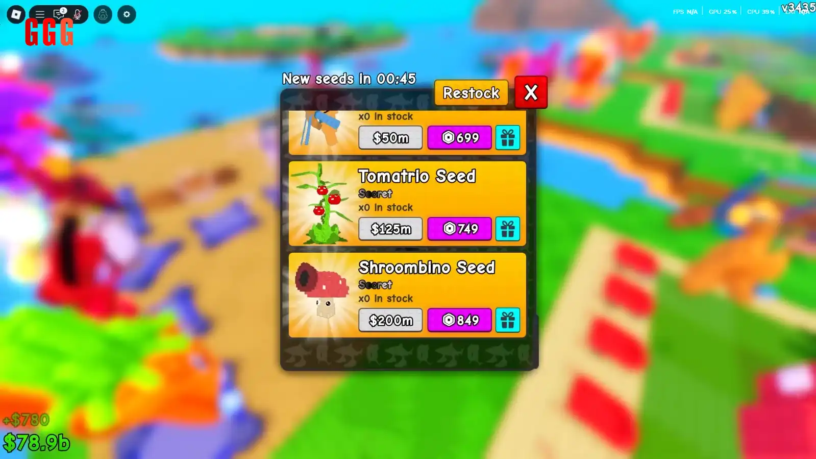 • Restock Trick: If you have a secret seed at hand, press the Restock button and pay 70 Roblox. This restocks it instantly and allows you to purchase another seed immediately.