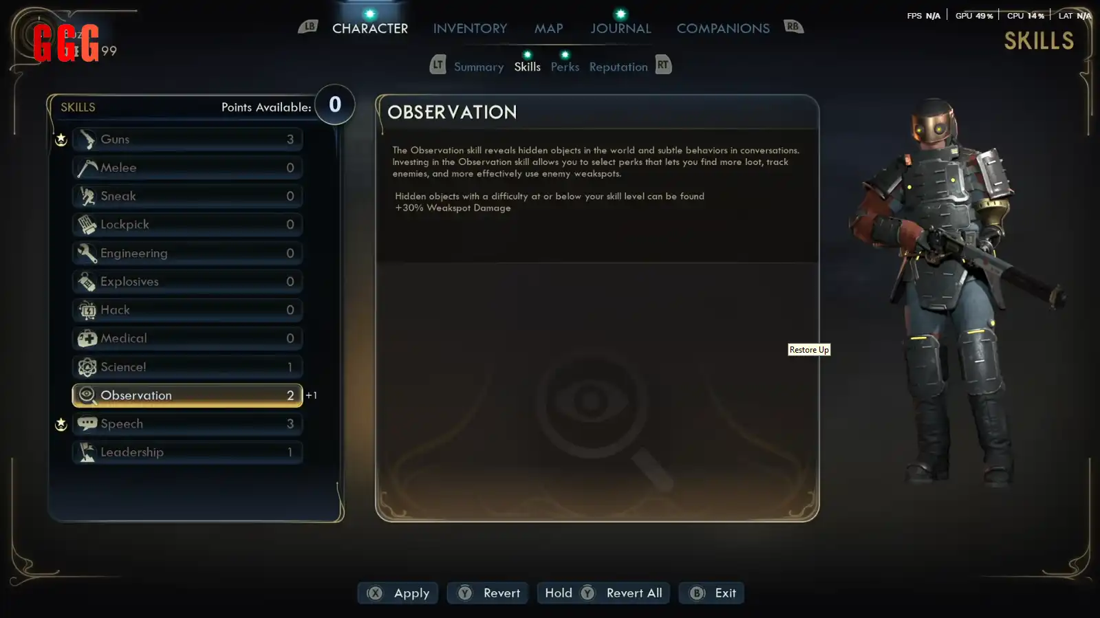 Where the franchise is taking its largest strides is in its new core role-playing systems. Obsidian has dropped the antiquated attribute dumping (i.e., Strength or Endurance) and instead focuses on skills and a more fleshed-out Flaw system, which together feel distinctive and rewarding.