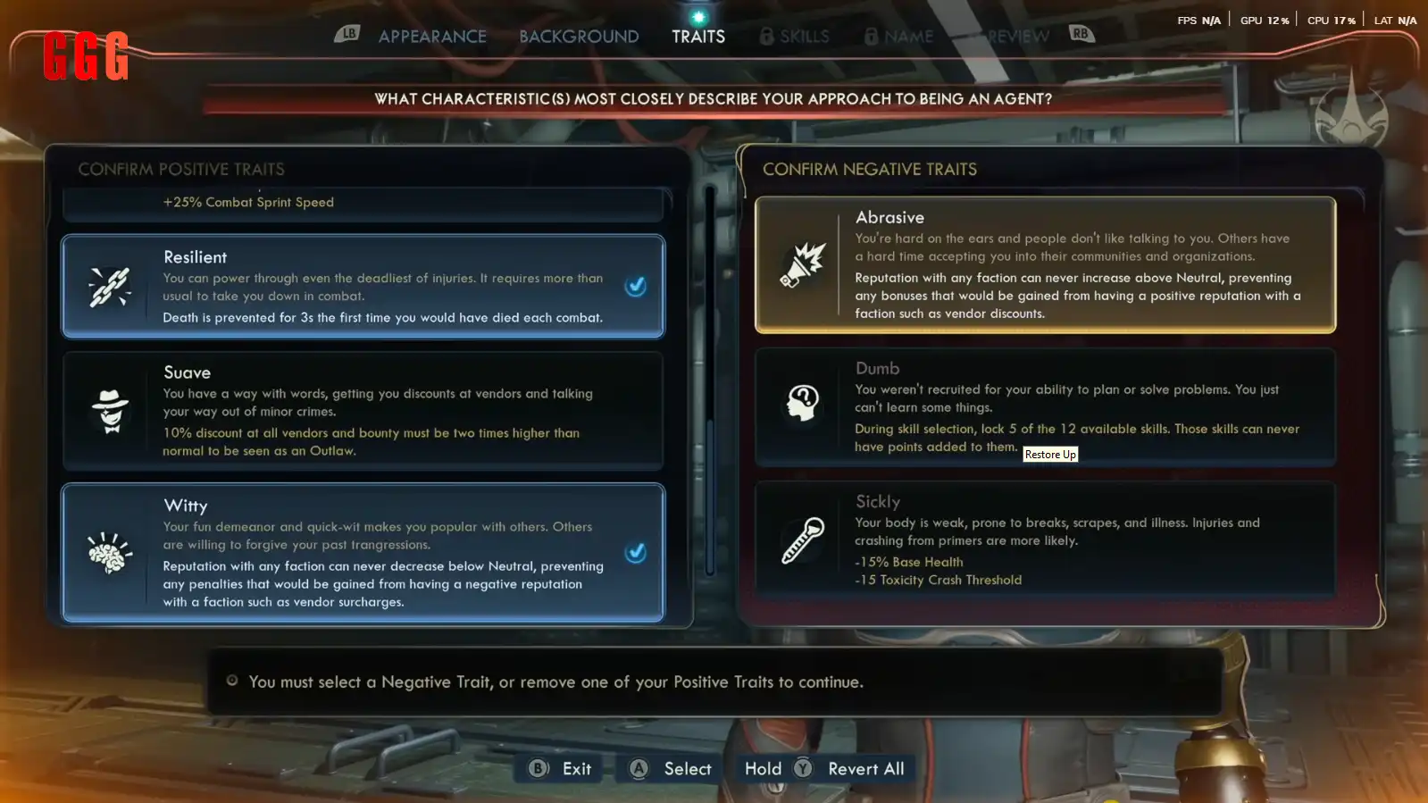 Tactical Advantage: There is strategic value to be gained in these negative traits, especially if combined with a specific build (i.e. focusing on leadership skills and companion damage rather than direct combat).